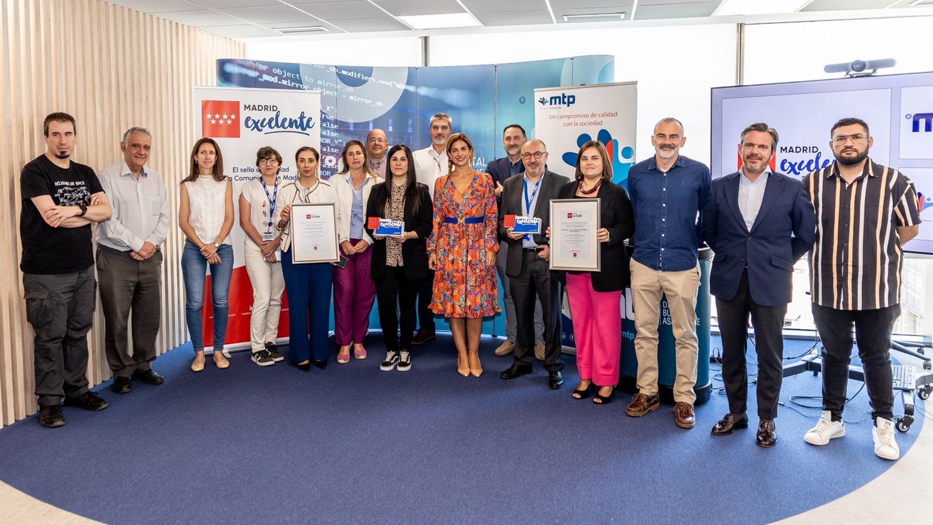 MTP ha recibido en un acto oficial el sello de calidad 'Madrid Excelente', que reconoce a las organizaciones y empresas que buscan la excelencia, la innovación y el desarrollo social en beneficio de los ciudadanos. En el mismo acto, la Fundación MTP también ha recibido el mismo sello.