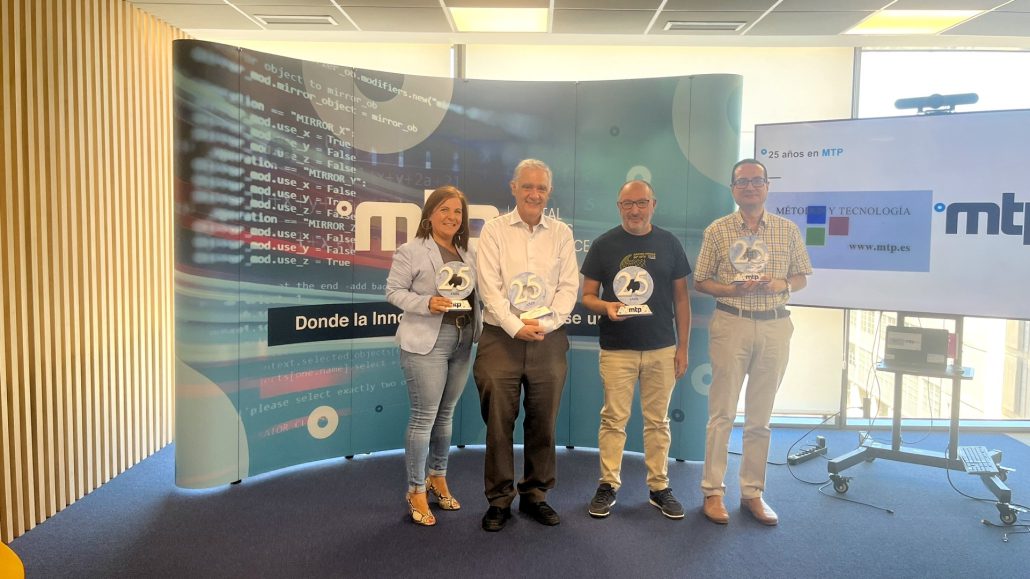 Cuatro destacados profesionales de MTP acaban de cumplir 25 años en la empresa, y con este motivo se ha celebrado un sencillo acto para reconocer esa amplia trayectoria y su compromiso con la empresa. Muchos compañeros participaron en este homenaje celebrado en el Espacio Ciberso, en Madrid.