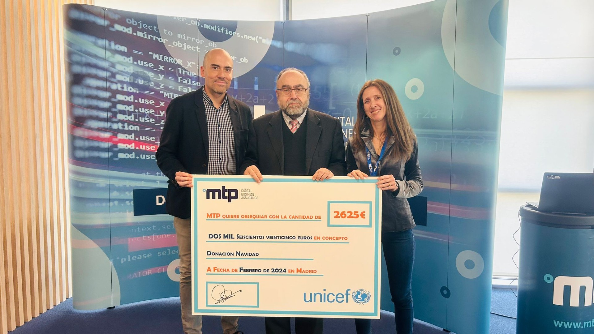 MTP entrega a la Fundación MTP, Aladina y Unicef el importe de cestas de Navidad donado por sus profesionales