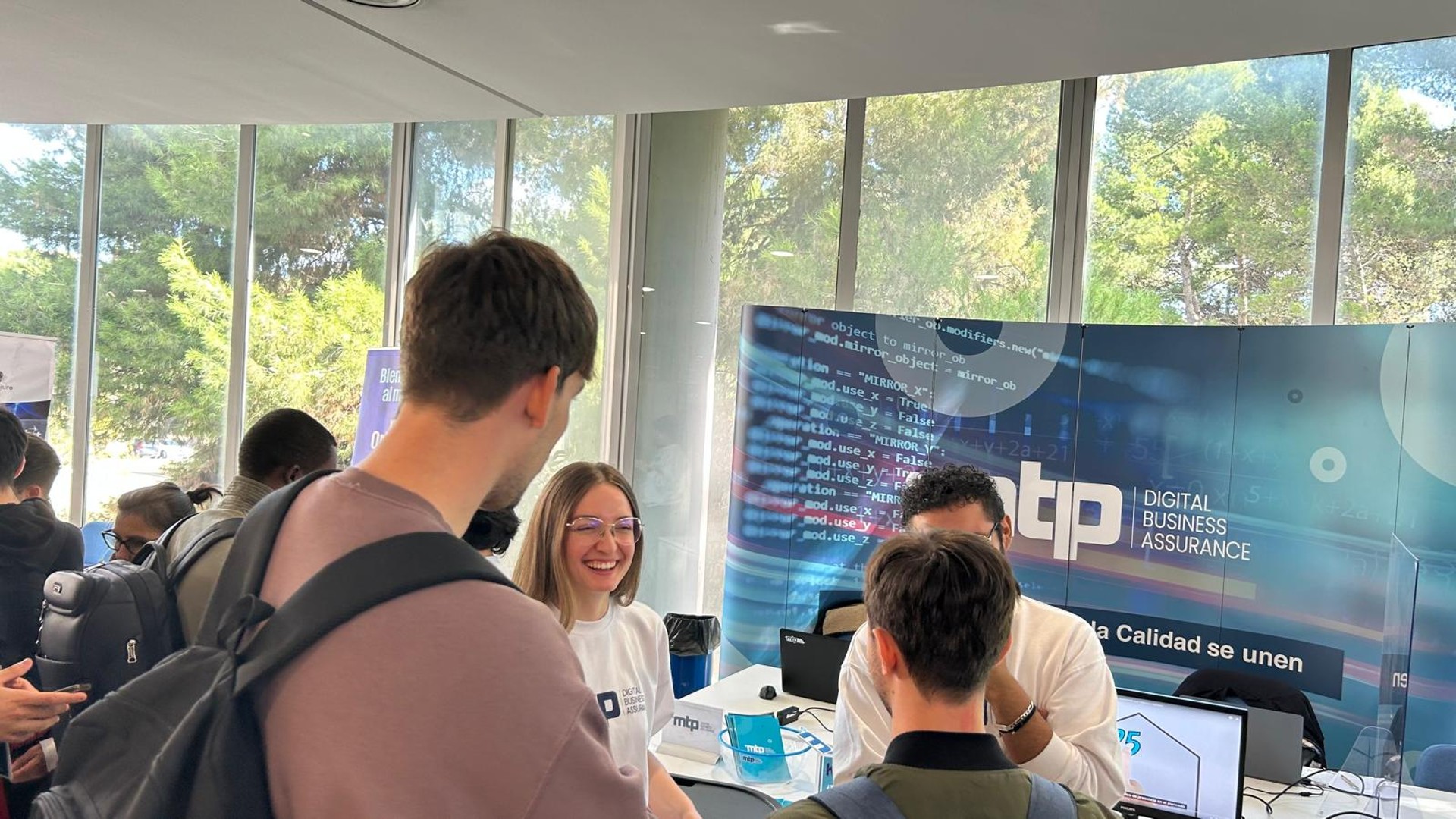 Gran parte de ese interés se deriva de la presencia de antiguos alumnos de esta Universidad entre los compañeros de MTP que han acudido al stand y han compartido charlas para contar, en primera persona, la experiencia de trabajar con nosotros y las posibilidades de desarrollo de carrera que se abren, aparte de los beneficios laborales.