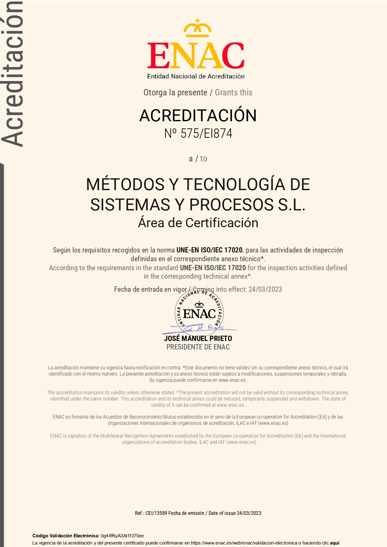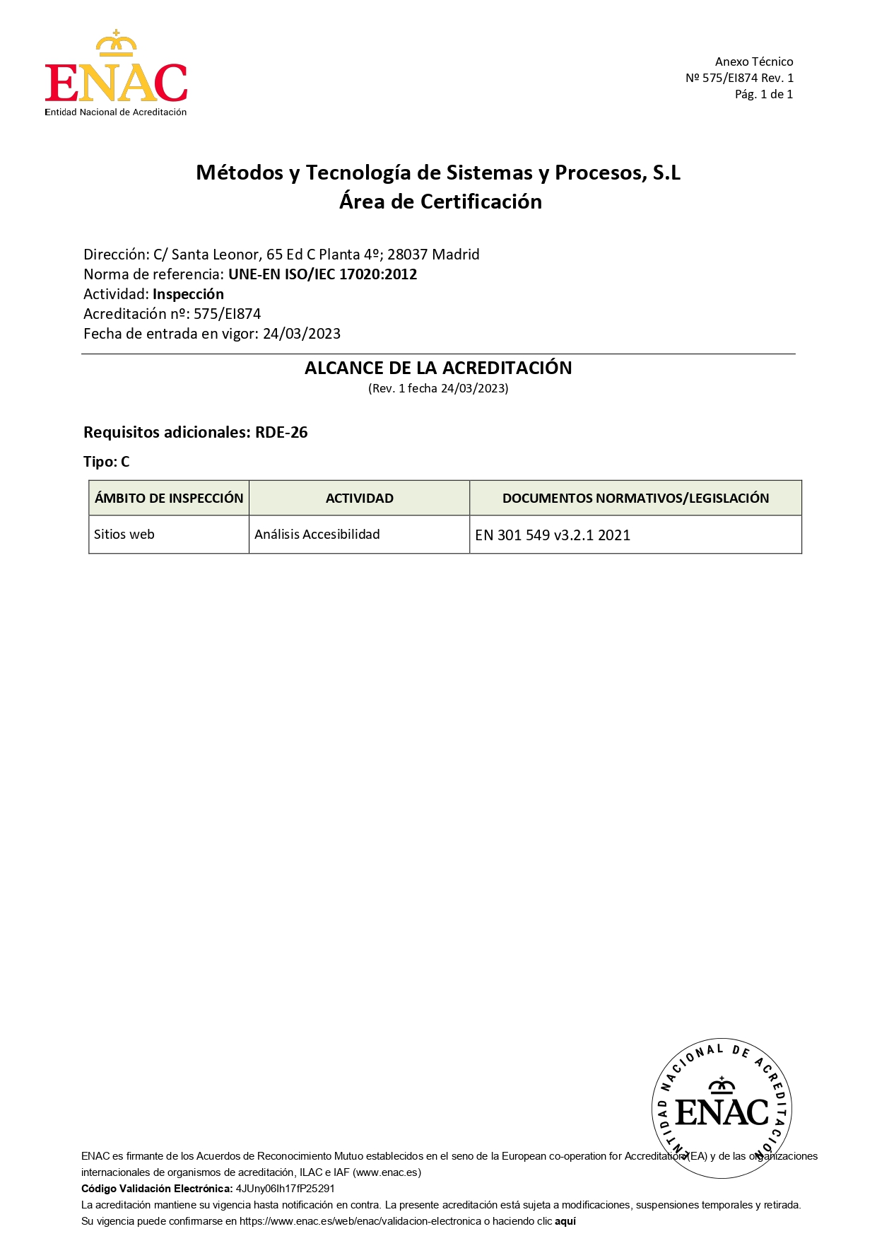 La ENAC es el único organismo nacional de acreditación en España y, por tanto, el único que puede emitir este tipo de certificados de acreditación en nuestro país. Además, es la primera vez que concede este tipo de acreditación, por lo que MTP se convierte en la primera empresa en España en obtener dicho reconocimiento, al igual que ya lo hizo de forma pionera con la certificación de la ISO 9001, y a nivel mundial como la primera empresa en certificarse en el máximo nivel de madurez, el 5, de TMMi para sus servicios de aseguramiento de calidad software.