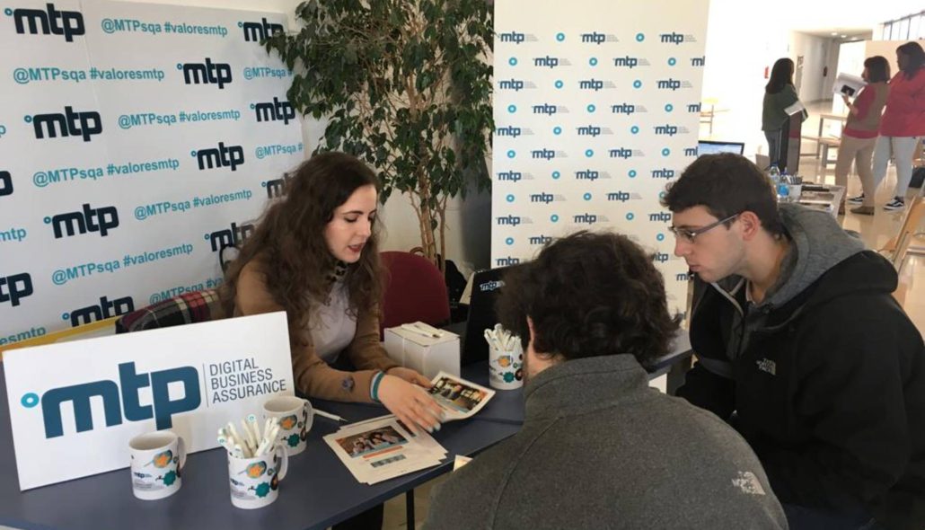 El principal objetivo de esta presencia de MTP en el Foro era, además de darnos a conocer como empresa experta en servicios de Digital Business Assurance, informar a todos los estudiantes interesados de nuestra oferta de programas de prácticas, así como de las oportunidades laborales que se les pueden abrir como profesionales del testing y aseguramiento de la calidad, en materia de seguridad informática o en pruebas de aplicaciones y web desde el punto de vista de la experiencia de usuario y accesibilidad.