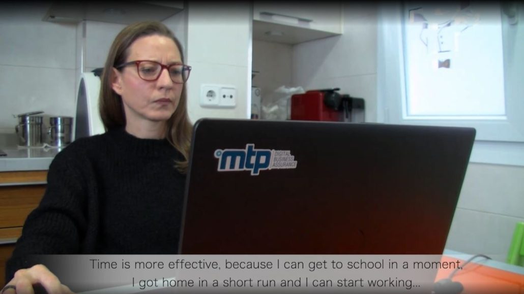 A partir del minuto 25:31 del vídeo, podemos ver a nuestra compañera María Joven contando su experiencia de conciliación, con teletrabajo (con datos relativos al momento de la grabación del reportaje) y la mejora de la productividad que supone, a la par que facilita su organización familiar. En resumen, tanto la empresa como sus profesionales salen beneficiados.