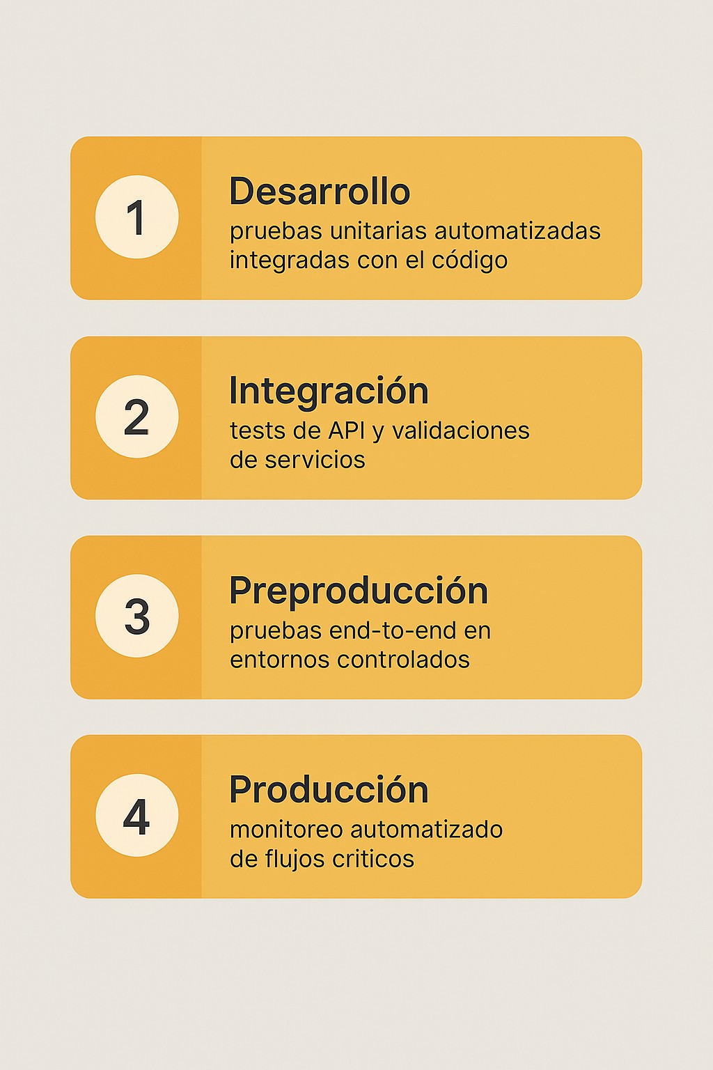 Depende del tipo de prueba y del entorno. Algunas opciones populares son Selenium, Cypress, Playwright, Appium, JUnit o pytest. La elección debe alinearse con la tecnología del proyecto y los objetivos de calidad.